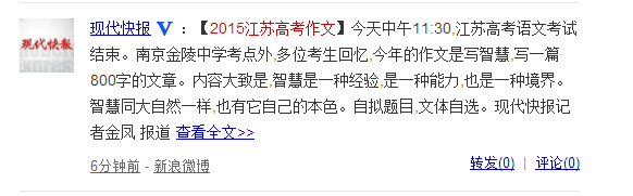 2015江苏高考作文题目公布:智慧