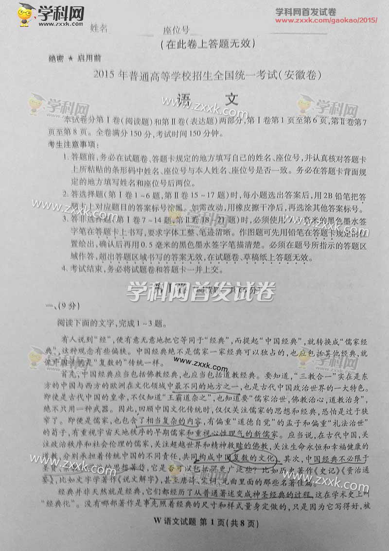2015安徽高考语文试卷真题及答案下载(附作文题目)