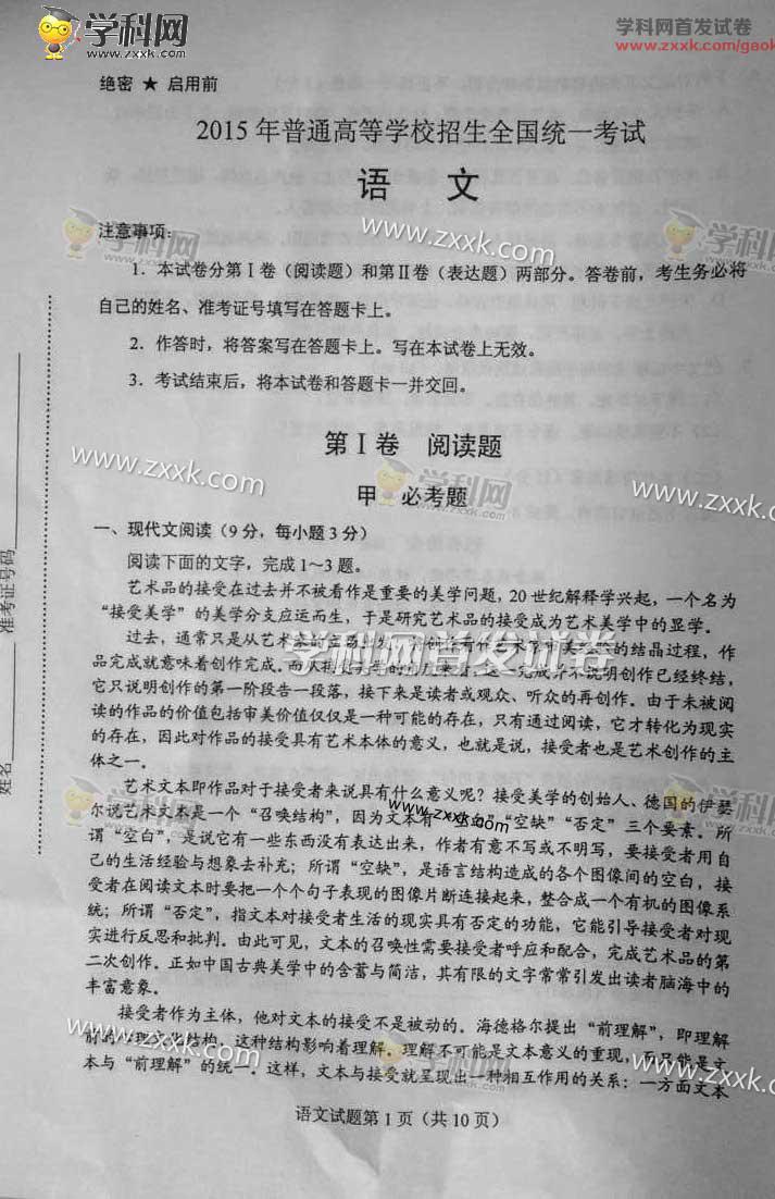 2015海南高考语文试卷真题及答案下载(附作文题目)
