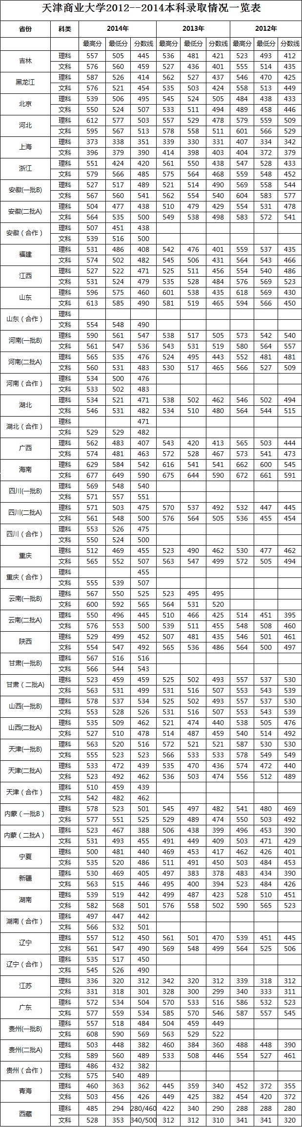 天津商业大学2014年录取分数线 天津商业大学2012-2014本科录取线情况一览表