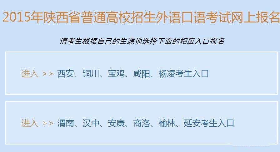 2015陕西高考英语口语考试网上报名系统入口网址:http://sxksbm.xawl.edu.cn或http://sxksbm.xawl.org