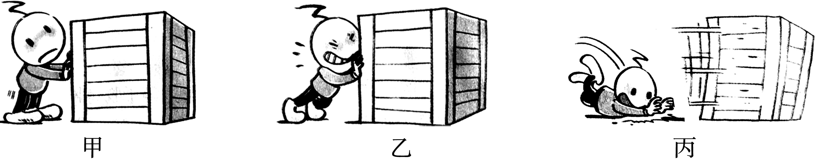 3. 小夏推箱子经历了图3所示的过程,最终箱子被推出去后又向前滑行了一段距离。对上述过程中涉及到的物理知识,分析正确的是?D