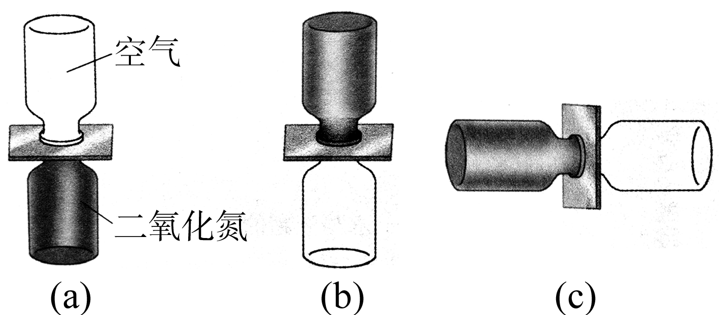 9. 将2个分别装有空气和红棕色二氧化氮气体(ρ二氧化氮>ρ空气?)的玻璃瓶口对口对接,中间用玻璃板隔开。抽开隔板后,通过观察瓶内颜色变化推断气体分子是否作无规则运动
