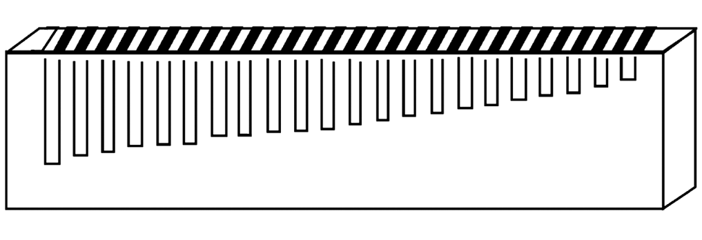 11.小夏在研究口琴的发声原理时, 拆掉了口琴外壳, 发现在气孔边分布着长短、厚薄都不同的一排铜片(如图10所示)。吹口琴时,在气流的冲击下,铜片振动,发出声音。对不同气孔吹气,改变了声音的 音调 ;在同一气孔处用不同的力度吹气,改变了声音的 响度 。