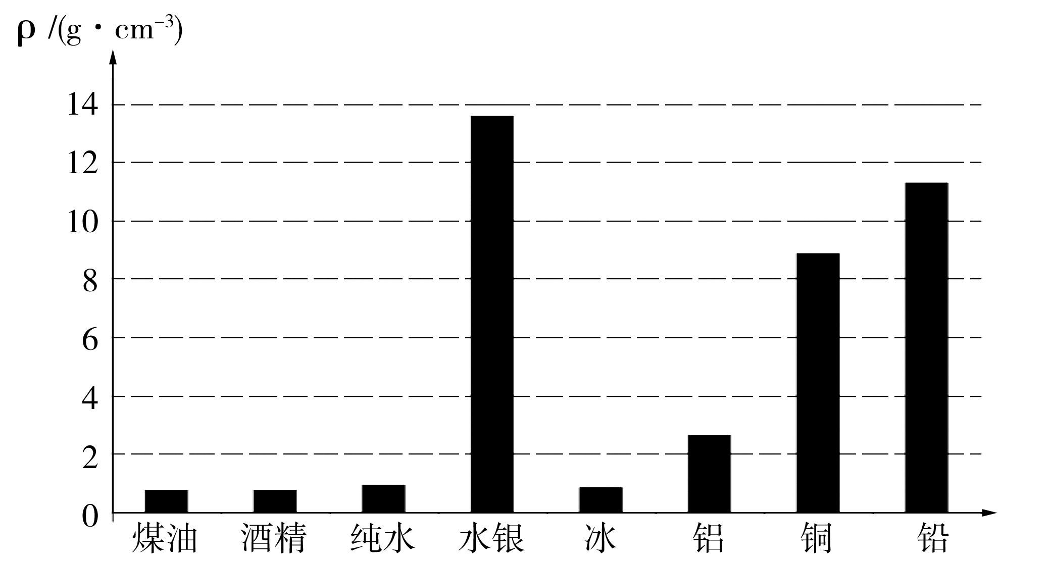 13.小夏用柱形图表示出了一些物质的密度(如图11所示),依据图中信息,你有哪些发现??写出其中的两条:(1) 每种物质都有自己的密度 ;(2) 不同的物质密度一般不同 。?