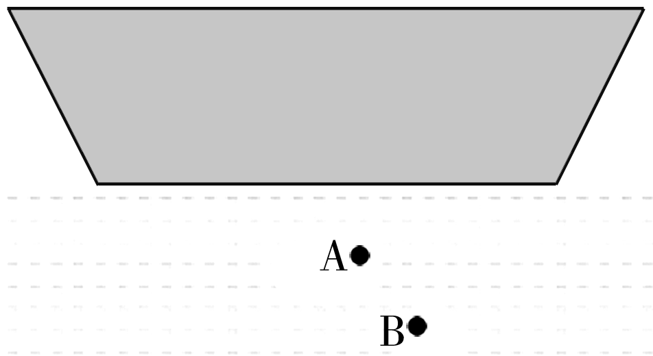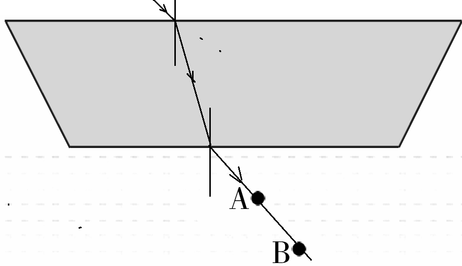 (1)一束光射向玻璃砖,经过两次折射后恰好经过A、B两点。请在图14中画出这束光的大致传播路径。??
