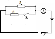 22.如图21所示,虚线框内有两个阻值相同的定值电阻和一个开关S1.当开关S1闭合时,电流表的示数增加0.2A,电路的总功率增加1.6W.请画出两种可能的连接电路图,并分别计算电源电压和定值电阻的阻值.?