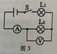 12.如图3所示,闭合开关S,两灯均不亮,电流表无示数,电压表有示数,则故障是