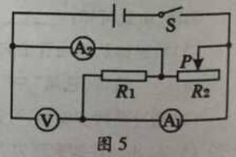 15.如图5所示,电源电压不变,闭合开关S,当滑动变阻器滑片P向右移动时
