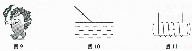 (2)请在图10中画出光从空气斜射入水中时折射光线的大致位置。