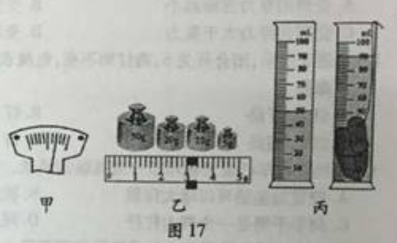 (2)如图17乙所示,用天平测得小物块的质量是 g;如图17丙所示,用量筒测量小物块的体积是 cm3,则小物块的密度是 g/cm3。
