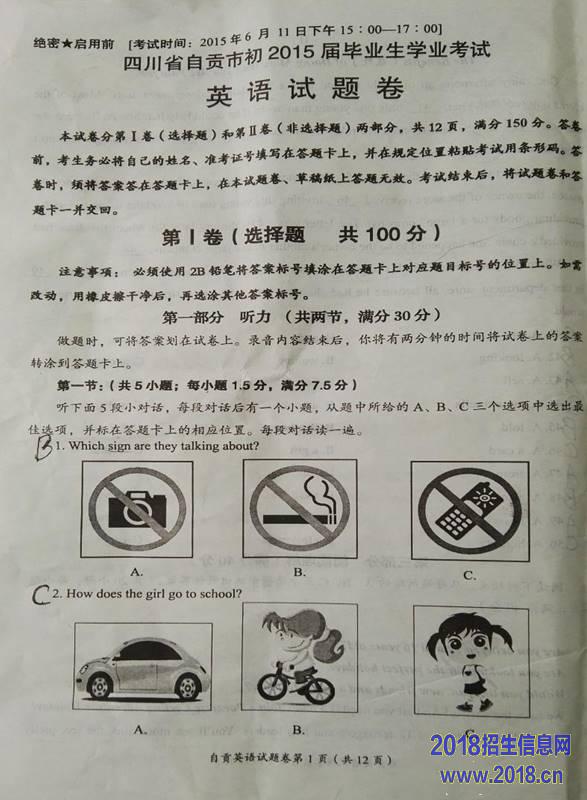 2015年四川自贡市中考英语试题(图片版,无答案)