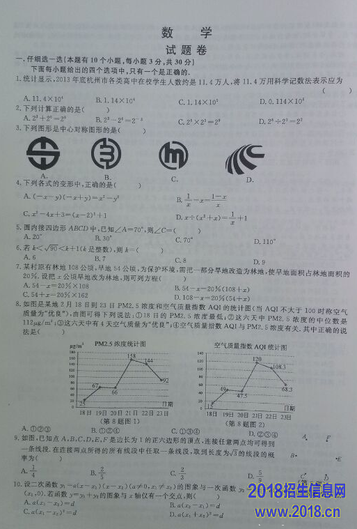 2015年浙江省杭州市数学中卷(图片版,含答案)