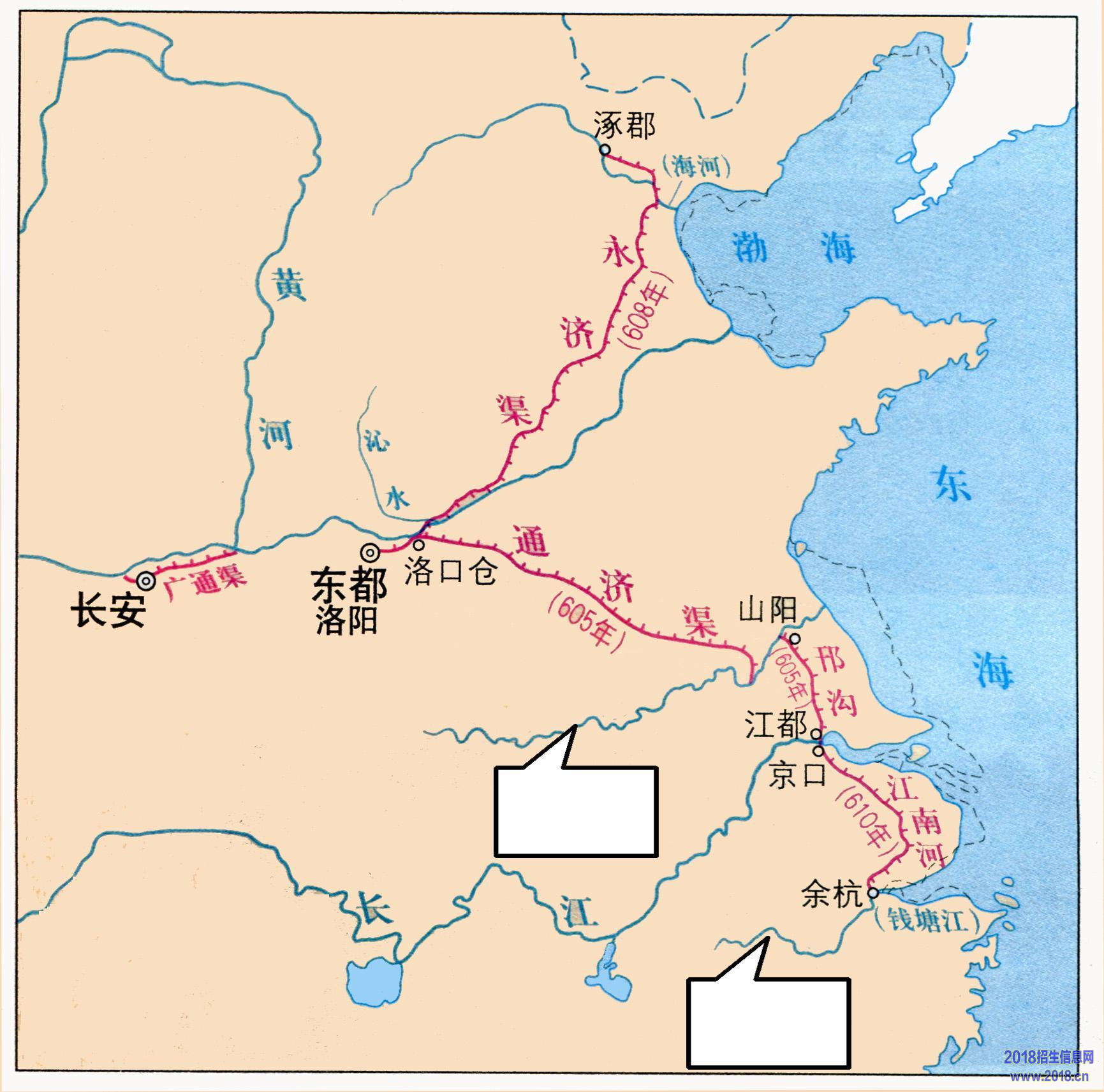 (2)据图分析隋朝大运河的作用(1分)