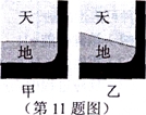11.战斗机水平飞行时,飞行员从右侧舷窗看到如图甲所示的“天地分界线”。当飞行员从右侧舷窗看到的“天地分界线”如图乙所示时,飞机可能在21教育名师原创作品