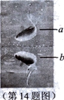14.从水下向水面看,看到一条鱼及其所成的像,如图所示。可以判断