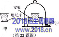18.如图所示,迅速下压活塞,筒内浸有乙醚的棉花被压燃。下压过程中,机械能转化为空气的 ▲ 能;在四冲程汽油机工作过程中,实现这一能量转化过程的是 ▲ 冲程。