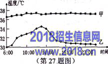 27.某健康学生对自己的体温及其生活环境温度进行了一段时间的测量,结果如图所示。