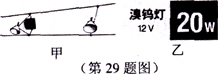 (1)如图甲所示,当磁体的磁极靠近正常工作的碳丝灯泡时,灯丝上端被磁体吸引,这是因为通电后的灯丝在磁场里受到了 ▲ 的作用。