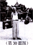 30.后端挑着装满道具的“百宝箱”,前端挑着由活动支架与花布组成的“戏台”,江西省非物质文化遗产传承人肖秋林就这样挑着担子四处游走,表演了40多年“一人一台戏”的布袋木偶戏。如图所示,假设“戏台”重100N,装了道具的“百宝箱”重200N,它们的悬挂点爿、曰之问距离为l.5m,扁担视作重力不计的硬直棒。