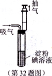 32.某地规定工业排放的废气中S02的含量不得超过0.4mg/L。某兴趣小组利用以下反应:S02+I2+2H20=H2S04+2HI,测定某工业废气中S02的含量,测试装置如图所示。