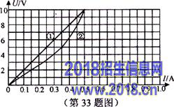 33.如图所示是某规格的小灯泡L和定值电阻R的U-I图象。