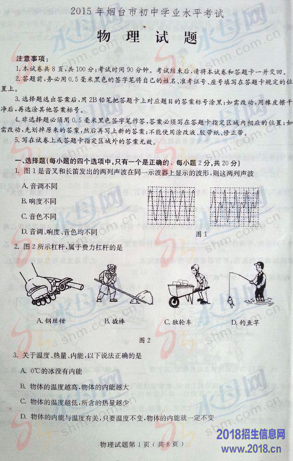 2015烟台中考物理试卷题发布(图片版,无答案)