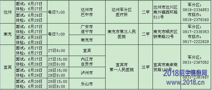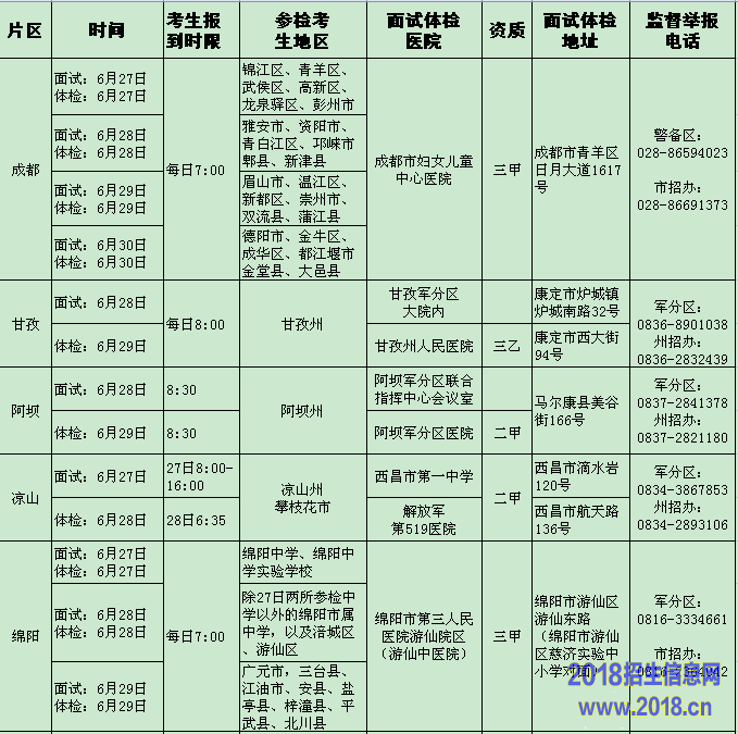 2015年四川省军队院校和国防生招生面试、体格检查日程安排