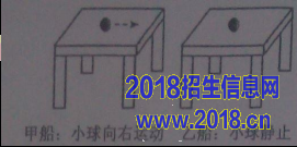 14. 在甲乙两艘遮蔽门窗的船上,分别观察到小球的运动情况如图所示(小球原静止在光滑水平桌面中央)。以下说法正确的是( D )
