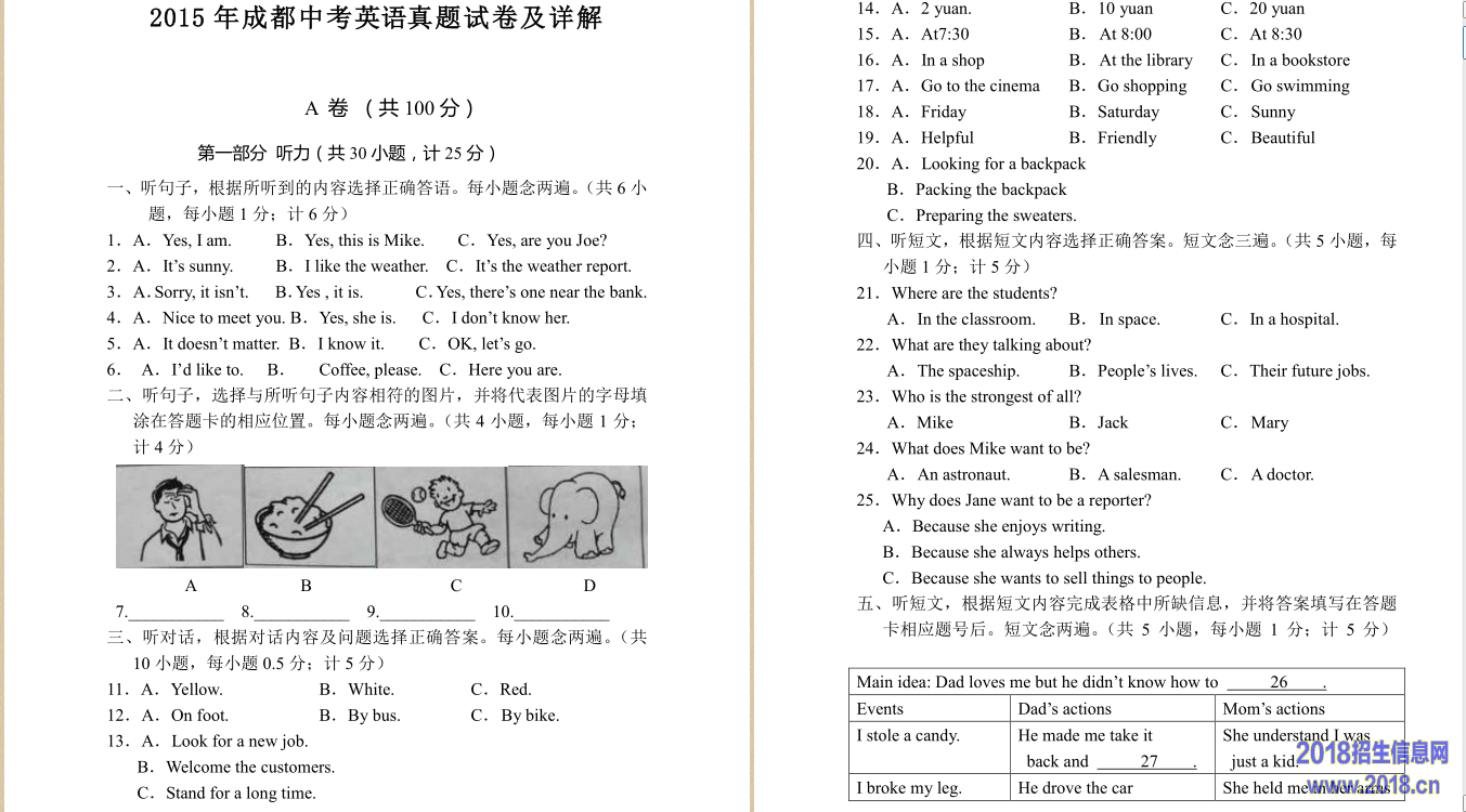 2015年成都中考英语真题试卷(图片版,含答案)