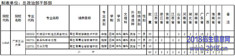 广东 | 食品科学与工程 | 指挥 | 军区军需仓储管理干部 | 理科 | 男 | 8 |