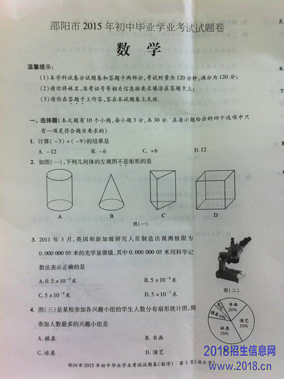 2015年湖南省邵阳市中考数学试题(扫描版,无答案)
