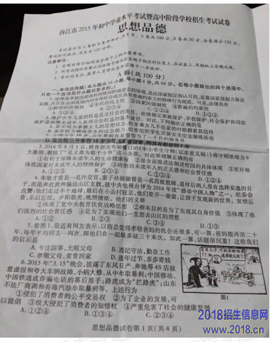 2015年四川省内江市中考政治试题(扫描版,无答案)