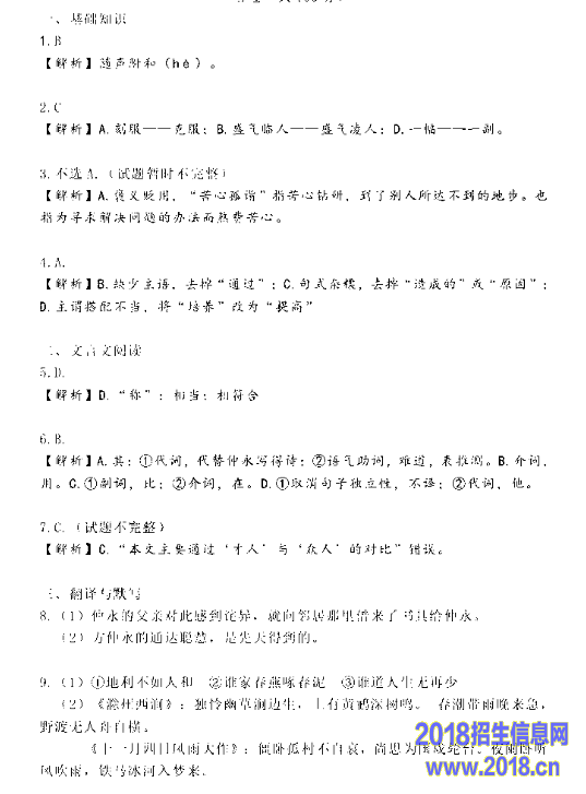 8.把第Ⅰ卷文言文阅读材料中的画线句子翻译成现代汉语。(4分)