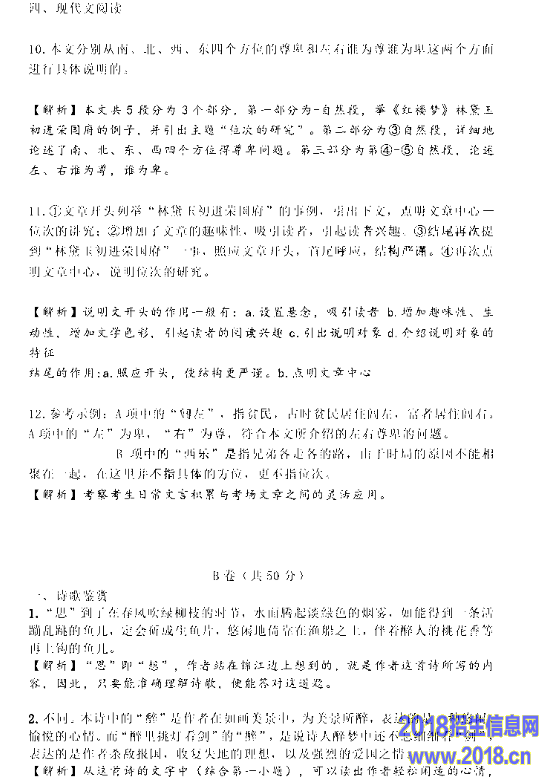 12.在下列选项中任选一项,简要分析其方位词是否符合本文所介绍的“位次的讲究”?(3分)