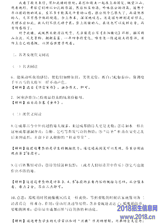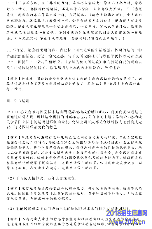 11.第⑩段中引用了杜甫建成草堂后的若干诗句,而并未引用杜甫在草堂的名作《茅屋为秋风所破歌》。若在此处引用《茅屋为秋风所破歌》是否合适?请谈谈你的观点和理由。(4分)