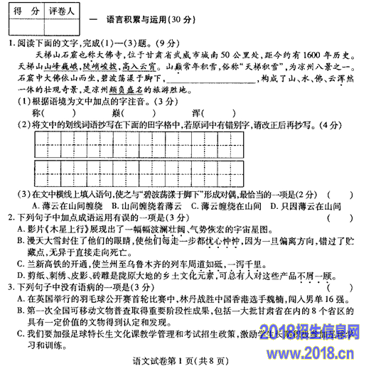 2015年甘肃省武威市中考语文试题及答案(图片版)