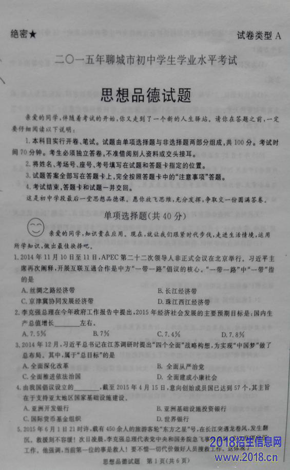 2015年山东聊城中考思想品德试题(图片版,含答案)