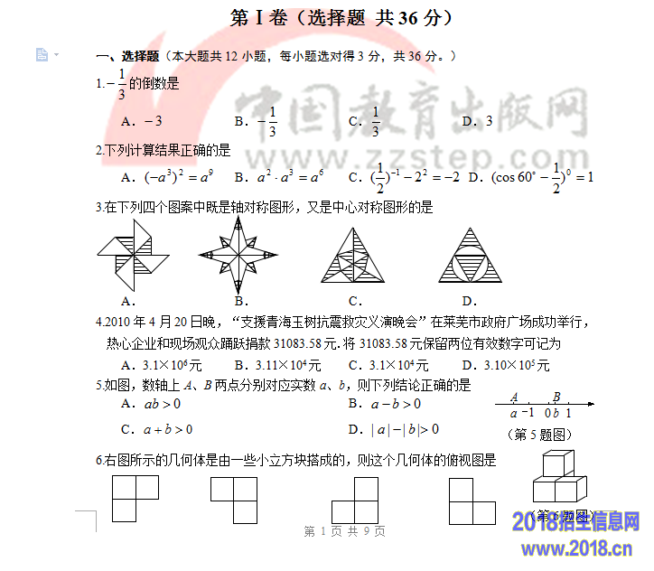 2015年山东省莱芜市中考数学试卷(图片版,含答案)