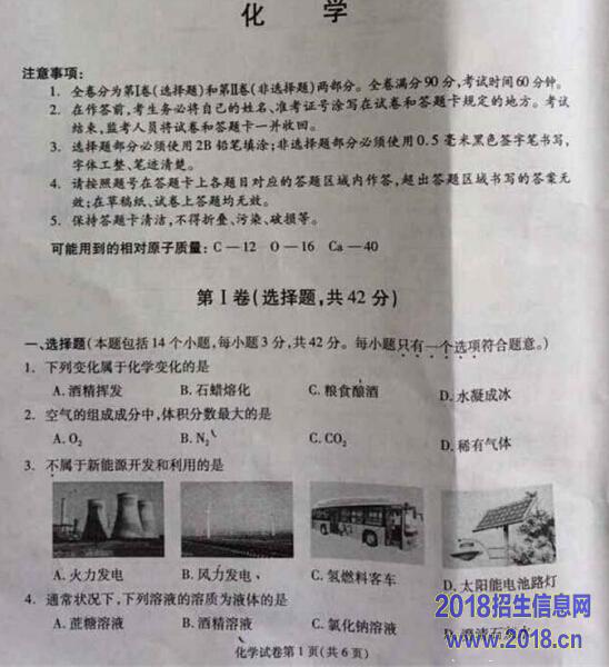 2015年四川省成都市中考化学试题(扫描版,含答案)