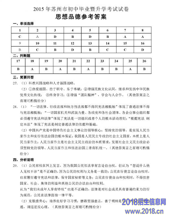 2015年江苏省苏州市中考思想品德试卷(Word版有答案)