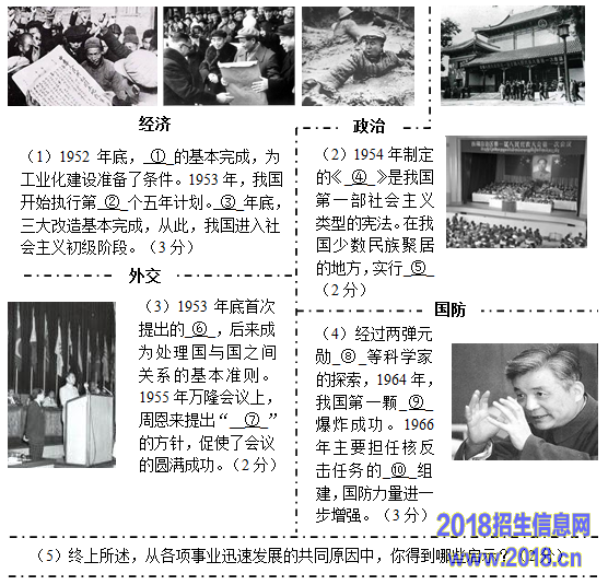 (3)和平共处五项原则;求同存异。(2分)