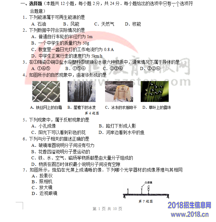 2016年巴中中考理综试题及答案