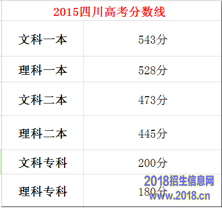 22日,据华西都市报报道,四川省2015年普通高考分数线划定:文科一本543分,理科一本528分;文科二本473分,理科二本445分;文科专科200分,理科专科180 分。