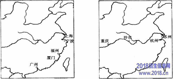 (1)图一、图二所示分别为中国近代哪一不平等条约开放的通商口岸?(2分)