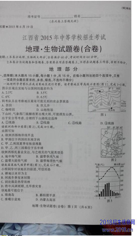 2015年江西省中考地理试题和答案
