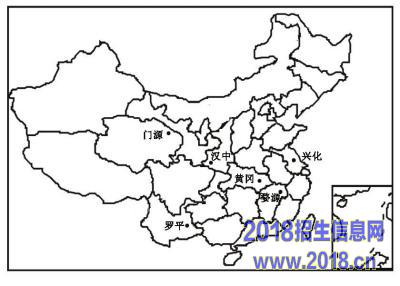 第Ⅰ卷选择题(共52分) 读地球公转示意图,完成1~2题。 1.今年6月5日是第44个“世界环境日”。这天地球运行位置最接近 的是 A.① B.② C.③ D.④ 2.当地球运行在①处时,下 列说法正确的一项是 A.天安门广场升旗仪式 最晚 B.长江中下游地区昼长 夜短 C.黄冈学校正午旗杆的影子最长 D.南极科学考察最繁忙 读我国局部地区轮廓示意图,完成3~4题。 3.图中与湖北省相邻的直辖市是 A.① B.② C.③ D.⑥ 4.关于图中省级行政单位,组合正确的一项是 A.①——陕——秦始皇陵兵马俑 B.③——长沙——岳阳楼 C.⑤——南昌——鄱阳湖 D.④——皖——黄山迎客松 读我国部分油菜花观赏地及其花期对比表,完成5~6题。 观赏地 花期 云南罗平2月至3月 江西婺源3月中旬至4月上旬 陕西汉中3月20日到4月15日 江苏兴化4月份前后 青海门源7月5日至25日 5.影响云南罗平油菜花开最早和青海门源油菜花开最迟的主要因 素分别是 A.地形、洋流 B.海陆位置、纬度 C.海陆位置、洋流 D.纬度、地形 6.结合图表,推测黄冈市油菜花正常情况下盛开的大致时间是 A.2月下旬 B.3月上旬C.4月初 D.5月中旬 世界各地的自然环境不同,导致各地的景观、风俗习惯、经济文化等 也不同。据此完成7~8题。 7.下列四幅地理事物景观图,位于我国北方地区的是 ①麦加朝圣 ②NBA篮球赛 ③桑巴舞 ④红场阅兵 A.①中东──五海三洲之地──石油──白种人──战争频发 B.②美国──人种博物馆──华尔街──最发达国家──硅谷 C.③巴西──巴西利亚──北回归线穿过──地球之肺──矿产资源丰富 D.④俄罗斯──多民族──面积最大──伏尔加河──针叶林广布 9.战国时期就出现了关于二十四节气的记载,二十四节气的划分为广大中国人民所重视。下列节气或节日主要祭拜祖先或祭拜逝去的亲人的是 A.端午 B.立春 C.清明 D.立冬 10.东晋南朝时期,江南经济发展迅速,而北方经济日益落后。导致这一变化的客观因素是 A.江南生产工具和生产经验比北方强B.南方人比北方人勤劳 C.北方社会动荡,南方相对安定 D.先秦以来,南方的自然条件优于北方 11.武则天不惜动用酷吏打击贪官污吏;朱元璋实行“重典治吏”,官吏枉法受赃80贯处以绞刑;雍正帝时,赃官的罪行一经核实,就把他的家底抄个干净,连他们的亲戚子弟的家也不放过,并下令:“丝毫不得碍于情面,务必严加查处。把贪官追得水尽山穷,叫他子孙做个穷人,方符朕意”。古代帝王这样做的根本目的是 A.为了保证国家的长治久安 B.为了肃清官员的贪污腐败 C.为了强化皇权,平抑穷富 D.为了健全和完善法律体系 12.1958年,《红旗》杂志发表文章,号召成立大公社。不久,北戴河会议通过《关于在农村建立人民公社问题的决议》,随后全国各地迅速掀起了人民公社化运动高潮。这充分反映了 A.平均主义和“共产风”是时代的要求,人民的共同愿望 B.国家发展经济毫无计划和目标 C.国家在发展经济时没有制定出总的路线方针和政策 D.广大人民群众迫切要求尽快改变我国经济、文化落后状况的普遍愿望 13.下表内容充分反映了 时间 事件 1979年 全国人大常委会发表《告台湾同胞书》,提出两岸实行“三通” 1989年台湾回祖国大陆探亲、访友、旅游、考察和经商的达40万人次 1990年两岸民间交往达100万人次,台湾成立海峡交流基金会 1991年祖国大陆成立海峡两岸关系协会 2009年台湾吴伯雄访问大陆,希望两岸兵戎相见永不再现 2014年国台办主任张志军抵达台湾进行访问 2015年习近平会见中国国民党荣誉主席连战一行 A.1990年以来,两岸关系才开始松动,民间交往的坚冰已打破 B.任何外来的或内部的分裂中国的阴谋注定要失败 C.实现祖国和平统一是两岸人民的共同愿望 D.建国以来,中共一直主张和平统一台湾 14.150年前,美国内战结束,这场战争结束的最伟大的意义在于 A.消除了南北方人民的矛盾 B.废除了黑人奴隶制 C.消灭了种族歧视 D.维护了联邦统一 15.二战结束后,1970年,德国总统勃兰特在华沙犹太人死难者碑前下跪,为纳粹时代的德国人认罪;2015年5月9日,普京在俄罗斯举行盛大庆典,纪念卫国战争胜利70周年;2015年,国务院发出通知,2015年9月3日放假一天,方便全国人民参与纪念中国人民抗日战争暨世界反法西斯战争胜利70周年纪念活动。这些向全世界人民传递的共同信息是 A.日本军国主义必败 B.珍爱和平,远离战争 C.法西斯极度残酷 D.战争与国家自身的发展无关 16.1999年,欧元正式诞生;1995年世贸组织成立;1997年,泰国金融危机爆发后迅速蔓延,很快变成了亚洲金融危机。这些表明,20世纪末 A.世界经济全球化 B.世界经济完全受控于国际经济组织和跨国公司 C.世界形势出现稳定局面 D.亚洲各国经济发展滞后 17.2014年7月13日至10月3日,第二届中国汉字听写大会在中央电视台成功举办。该节目受到了全国各界人士的喜爱与鼓励,其收视率和影响超越了电视剧和综艺选秀,成为年度最热的文化现象之一。对此认识正确的有 ①汉字文化博大精深,源远流长②汉字文化是中华民族优秀的传统文化③我国公民有强烈的文化认同感④汉字是世界上最优秀、最古老的文字 A.①②③B.②③④C.①②④D.①③④ 18.网络具有两面性,有利也有弊。作为一个普通网民,我们应该 ①为了避免伤害,拒绝上网②自觉抵制网上的不良诱惑③正确认识网络,用其所长、避其所短④遵守道德和法律,文明上网 A.①②