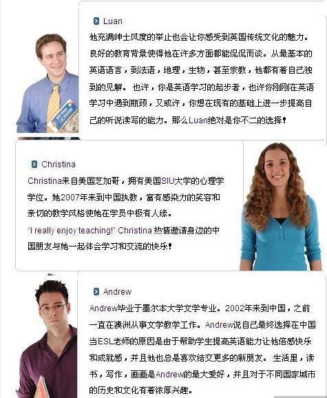 北京韦博国际英语师资介绍 北京韦博国际英语师资怎么样?外教严格控制教学质量的重要环节。拥有TESOL证书是韦博选拔教师时最主要考察的任教资格之一。韦博不但严格审查外教的任教资格。更是在国内率先与TESOL证书培训机构结成联盟,进行高水准的英语外教的培养工作。