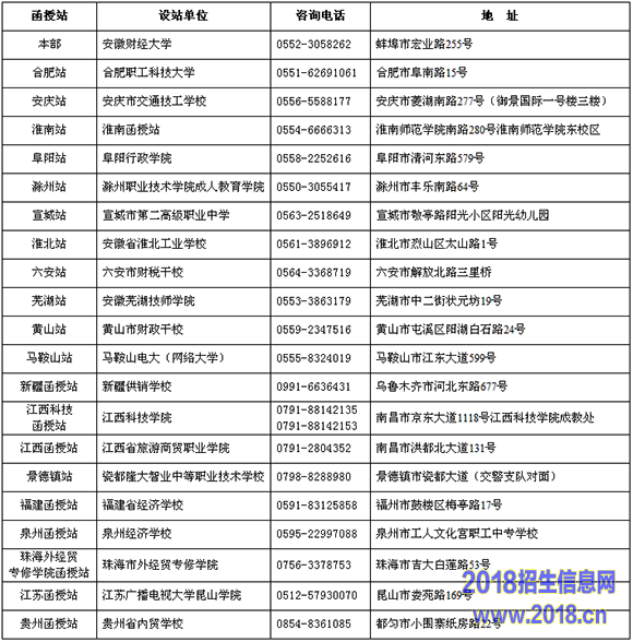 安徽财经大学成人高等教育函授站通讯录