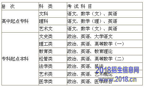 1.文科、艺术文的考试科目为语文、数学(文)、英语,理科的考试科目为语文、数学(理)、英语。